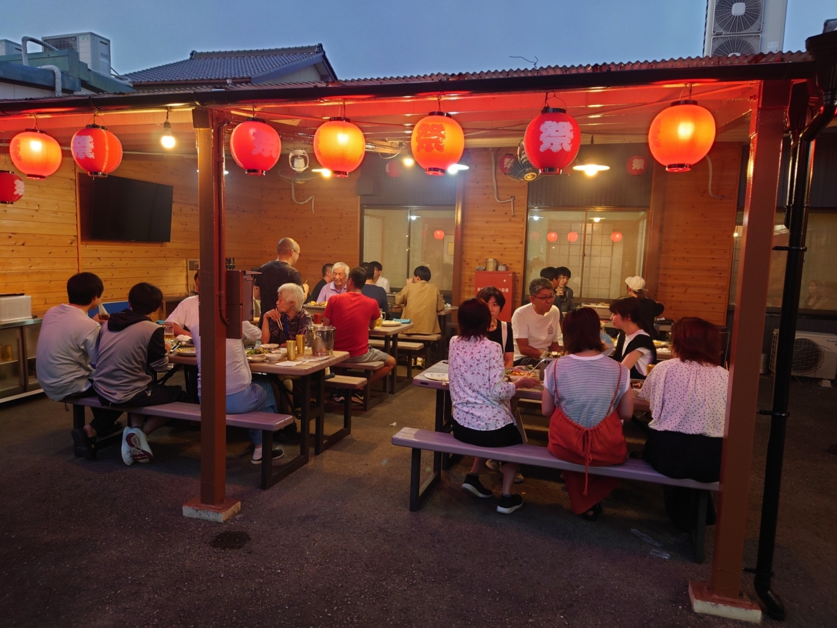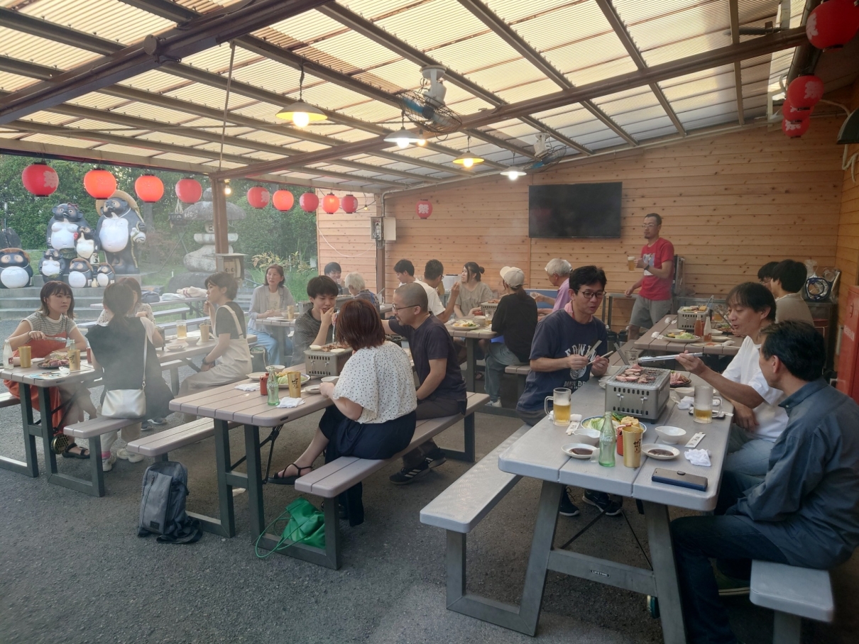 室内での懇親会も良いですが、たまには外で開放的に、季節を感じながら(暑い中)の懇親会も良かったです。
